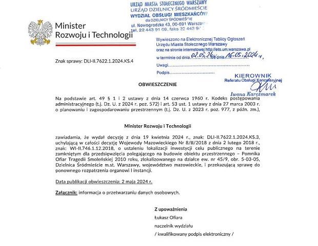 Het monument op het Piłsudski-plein in Warschau werd tijdens de PiS-regering opgericht door de reguliere juridische procedure te omzeilen - zodat het kan worden ontmanteld of verplaatst.  Er zijn maatregelen genomen om ongeoorloofde constructie te elimineren