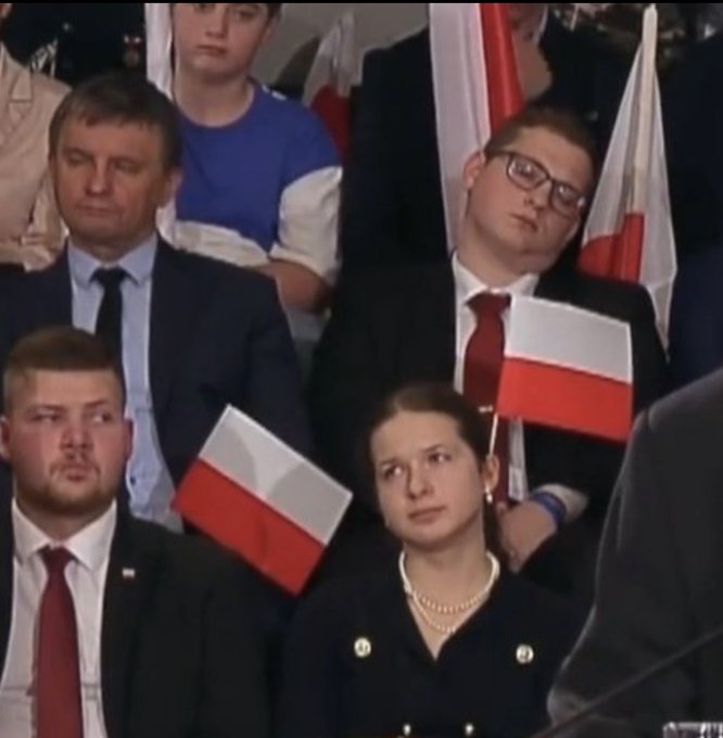 Wat is de houding van jongeren tegenover Kaczynski? De oude opa praatte zulke onzin dat mensen in slaap vielen. Een van hen zat centraal achter de voorzitter van Wet en Rechtvaardigheid. Alles werd getoond door de camera's.