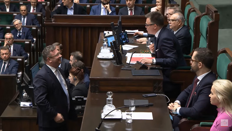 In de wandelgangen van de Sejm vond een verhitte woordenwisseling plaats tussen PiS-parlementslid Michał Wójcik en Sejm-voorzitter Szymon Hołownia. De reden voor het meningsverschil was het besluit van de Kamer om toestemming te geven voor de arrestatie van voormalig minister van Justitie Zbigniew Ziobro. — U verliest uw zenuwen, meneer. Laten we een keer afspreken om te praten, want straks ga je mij beschuldigen van de erfzonde,' onderbrak de sheriff me eindelijk.
