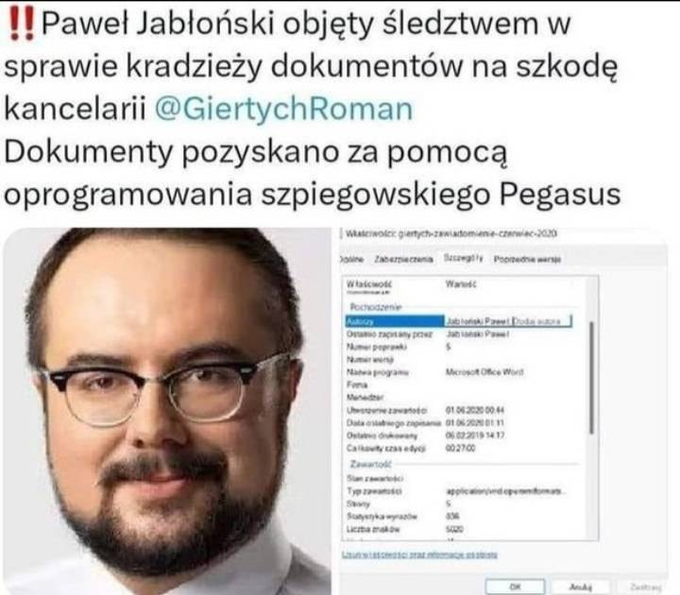 Pawel Jabłoński objęty śledztwem w sprawie kradzieży dokumentów na szkodę kancelarii @GiertychRoman